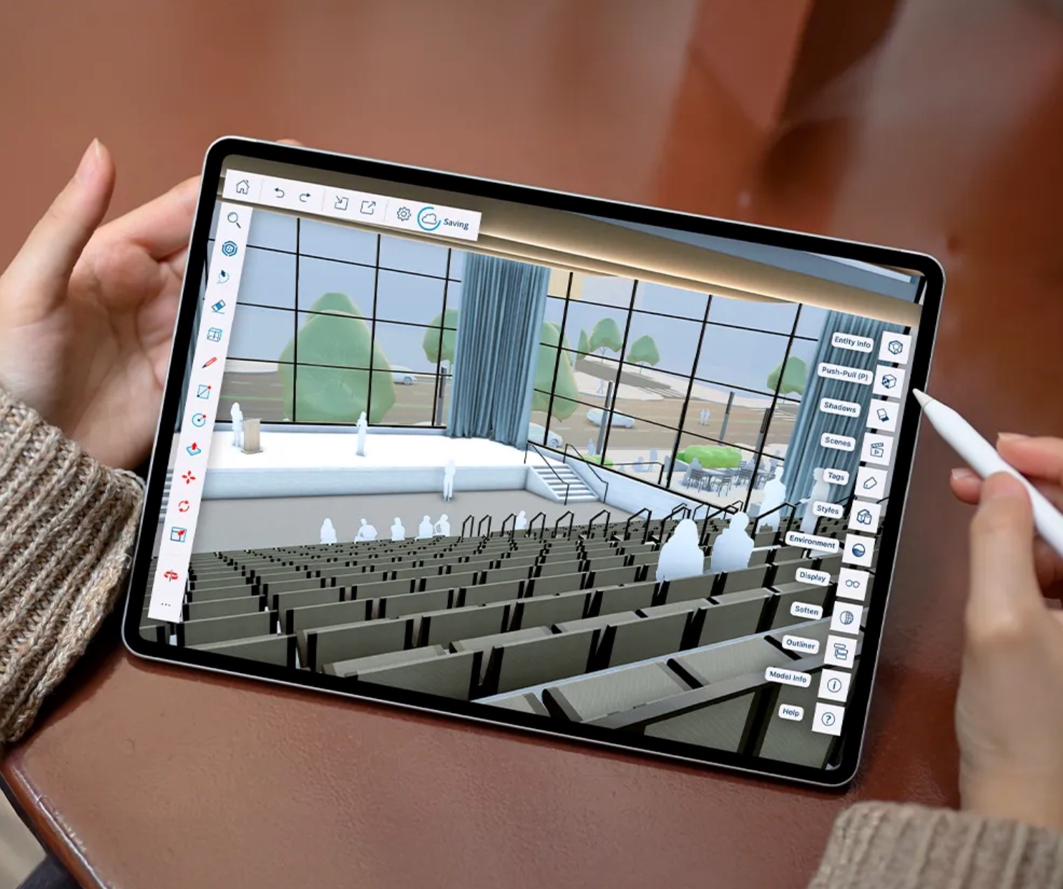 The new Collaboration Bar lets you share a live model link directly from the interface — clients and reviewers can navigate the 3D space, take measurements and leave threaded comments without needing a SketchUp account. Photoreal Materials on iPad have also been refined with greater control over physical surface properties.